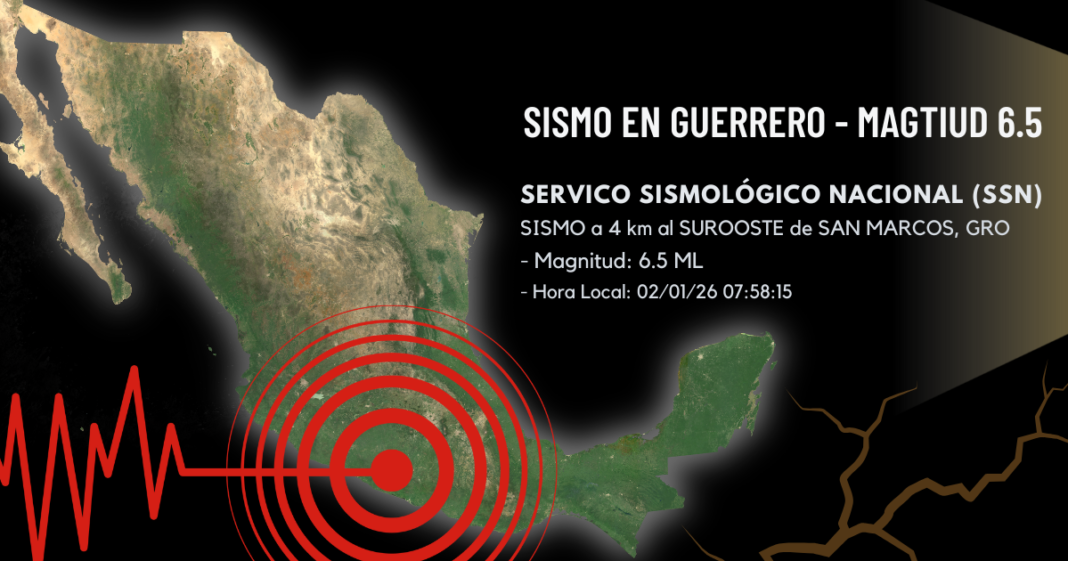El Servicio Sismológico Nacional (SSN) reportó una fuerte sacudida este 2 de enero; Guerrero y la costa del Pacífico concentran la mayor actividad telúrica del inicio de año.