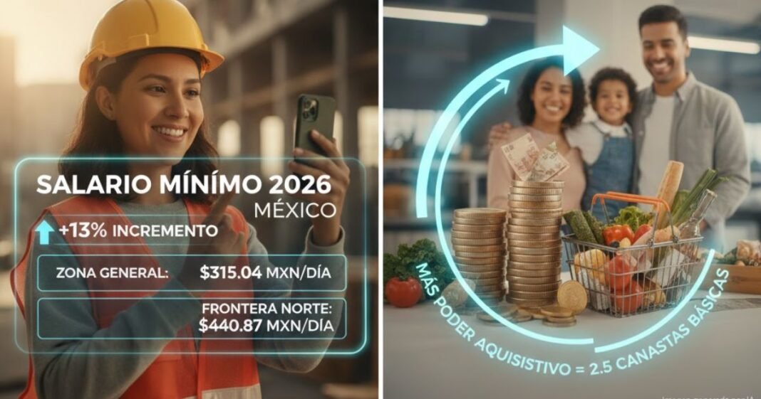 Salario Mínimo 2026: el año inicia con una actualización positiva para la economía de las familias mexicanas. Bajo la directriz del Gobierno Federal encabezado por la presidenta Claudia Sheinbaum, este día entra en funciones el incremento salarial del 13%, una medida diseñada para que el ingreso de los trabajadores alcance para cubrir el costo de 2.5 canastas básicas.
